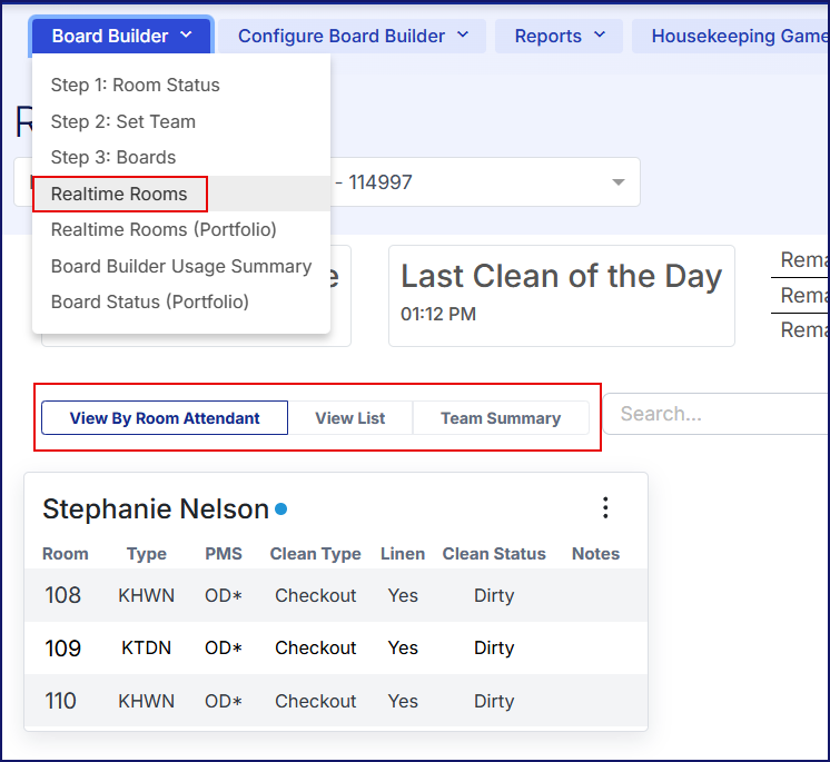 3. Select your preferred view: View by Room Attendant, List View, or Team Summary.