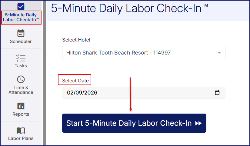 - Select 5-Minute Daily Labor Check-In from the left navigation menu (or the mobile app menu).
