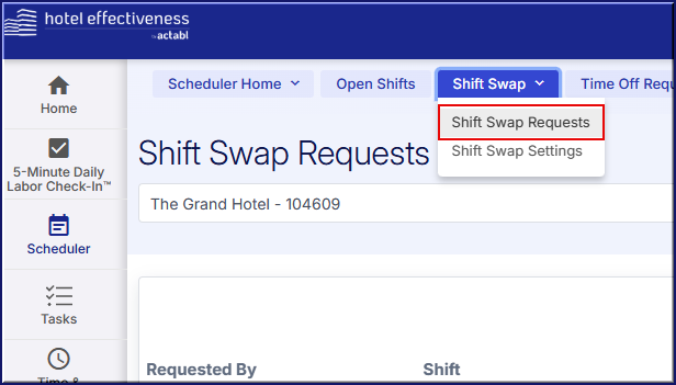 - Navigate to Scheduler > Shift Swap > Shift Swap Requests.