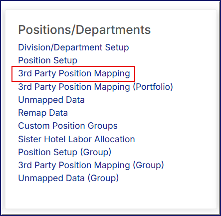 - Under the "Positions/Departments" section, select 3rd Party Position Mapping.