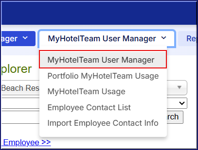 - Hover over MyHotelTeam User Manager in the top menu and select MyHotelTeam User Manager.