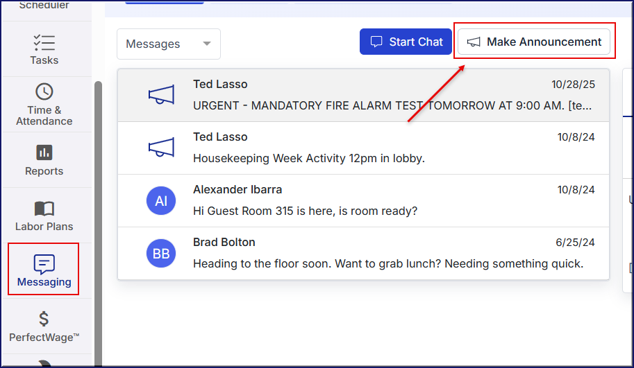 The Result Success: The announcement appears in the "Messages" inbox of all selected recipients immediately.