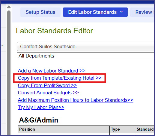 - For instructions on how to copy labor standards from ProfitSword, please review the following Article: ProfitSword > Hotel Effectiveness Labor Plan Copy