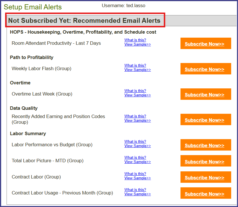In order for the HOPS alerts and reports to show meaningful data, your hotels must enter and publish schedules in Hotel Labor Scheduler. They also need to enter the number of rooms cleaned by room attendant through Night Audit Entry or Housekeeping Gameday in Hotel Effectiveness.