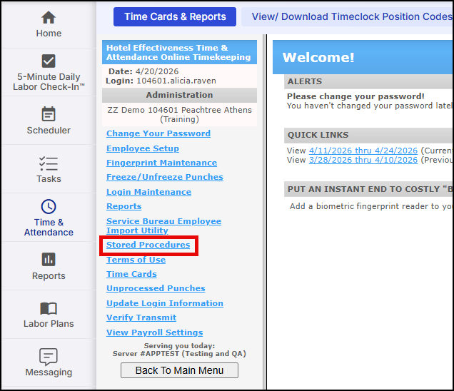 Within an hour, the edits that you make within the Time & Attendance system will flow through and be valid for the entire Hotel Effectiveness system.