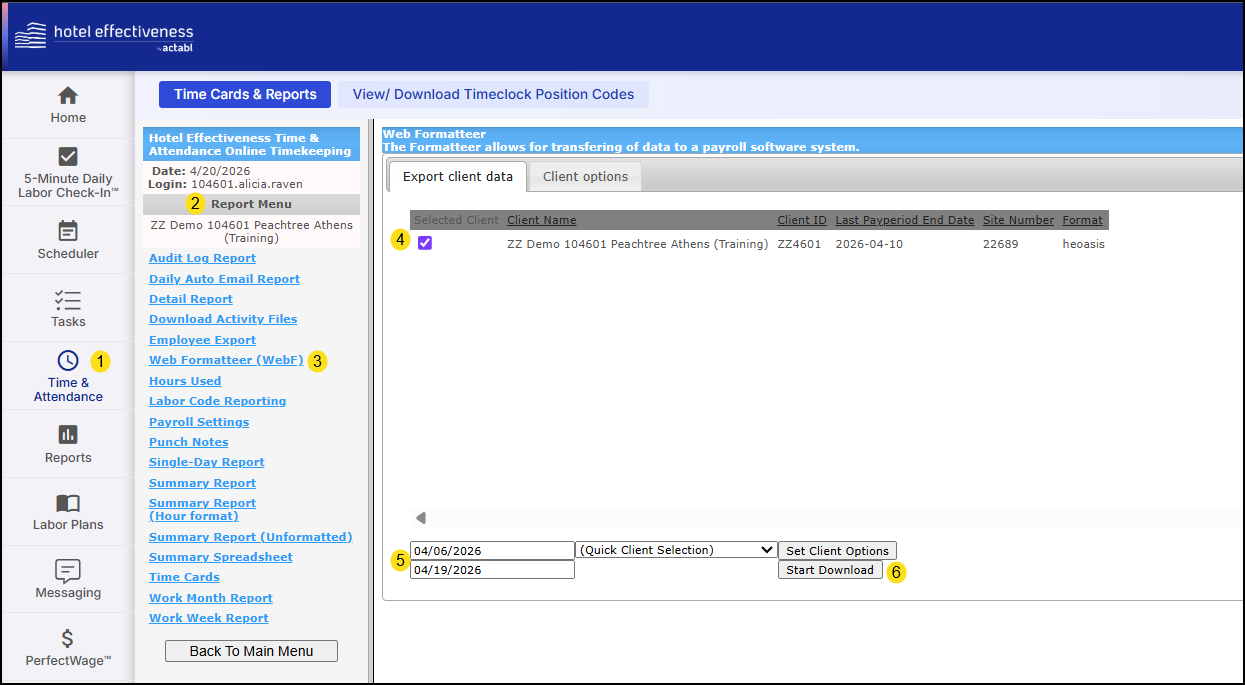 A Timeclock Position Codes Page customized for your hotel is available for download in Hotel Effectiveness. Your actions are required as follows: