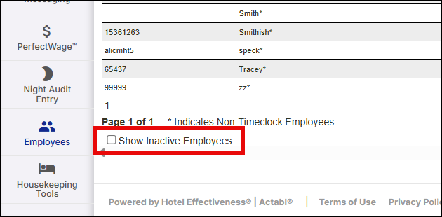 Within an hour, that change will flow through to the rest of the Hotel Effectiveness tools. If you ever want to view those users you have made inactive, you can click on 'Show Inactive Employees' at the bottom of your Employee Manager page in Hotel Effectiveness. To reactivate the employee, simply clear out the Term Date and hit save and they will become an active employee again.