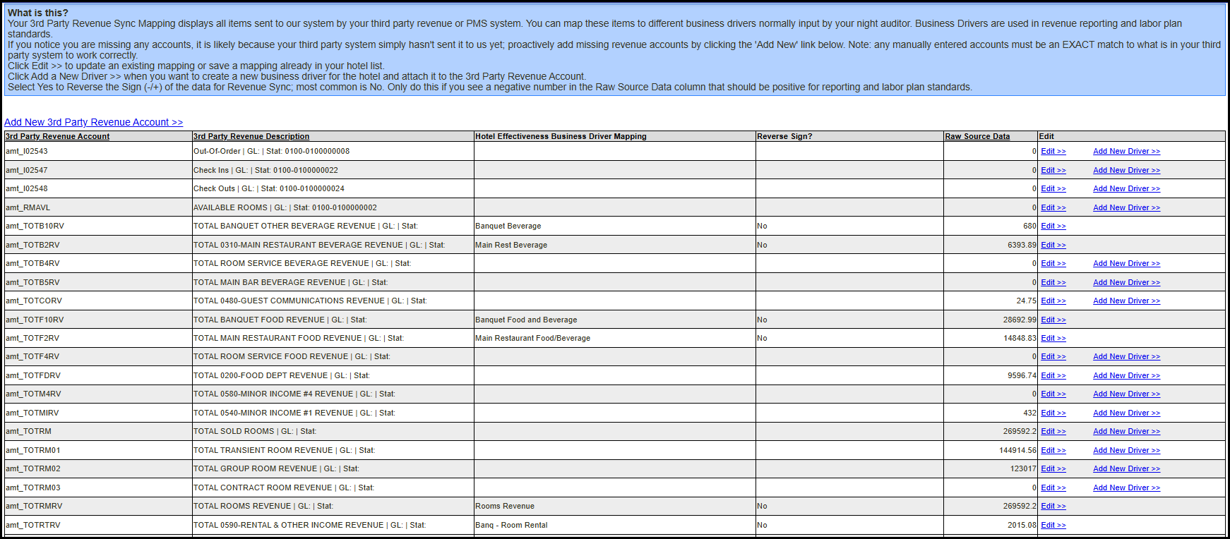 - When looking over the list of Business Drivers that are importing into Hotel Effectiveness, the question is what needs to be mapped?